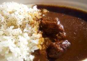 | 肉汁いっぱいの大粒な粗挽き肉を贅沢に使用した、食べ応えのある欧風カレーです。 |